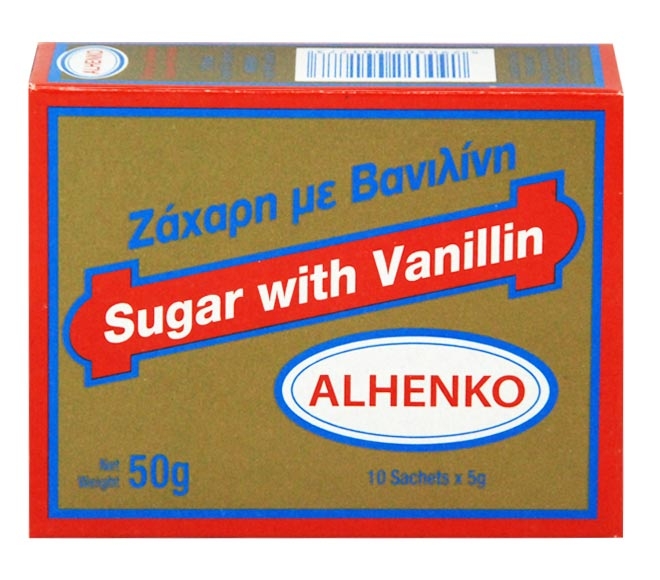 Alhenko Sugar In Vanillin 10X50Gr ALLERGEN DISCLAIMER / ΠΡΟΕΙΔΟΠΟΙΗΣΗ ΑΛΛΕΡΓΙΟΓΟΝΩΝ For further information regarding allergens, please contact the store directly at Για περισσότερες πληροφορίες σχετικά με αλλεργιογόνα, παρακαλώ επικοινωνήστε απευθείας με το κατάστημα στο 24533243