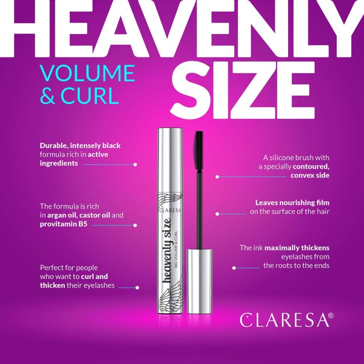 HEAVENLY SIZE Mascara: Take your lashes to new heights with thickening, curling, and nourishing careβ€”all in one swipe.