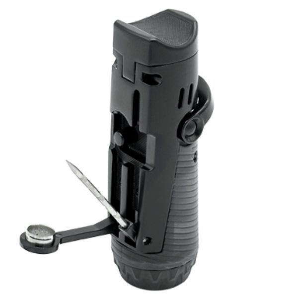 A lighter with Jet Flame ignition and an unusual ignition system. Equipped with 2 nozzles providing intense flame and an opening punch for punching holes in cigars and a needle. It also has a place on the head to place a cigar.