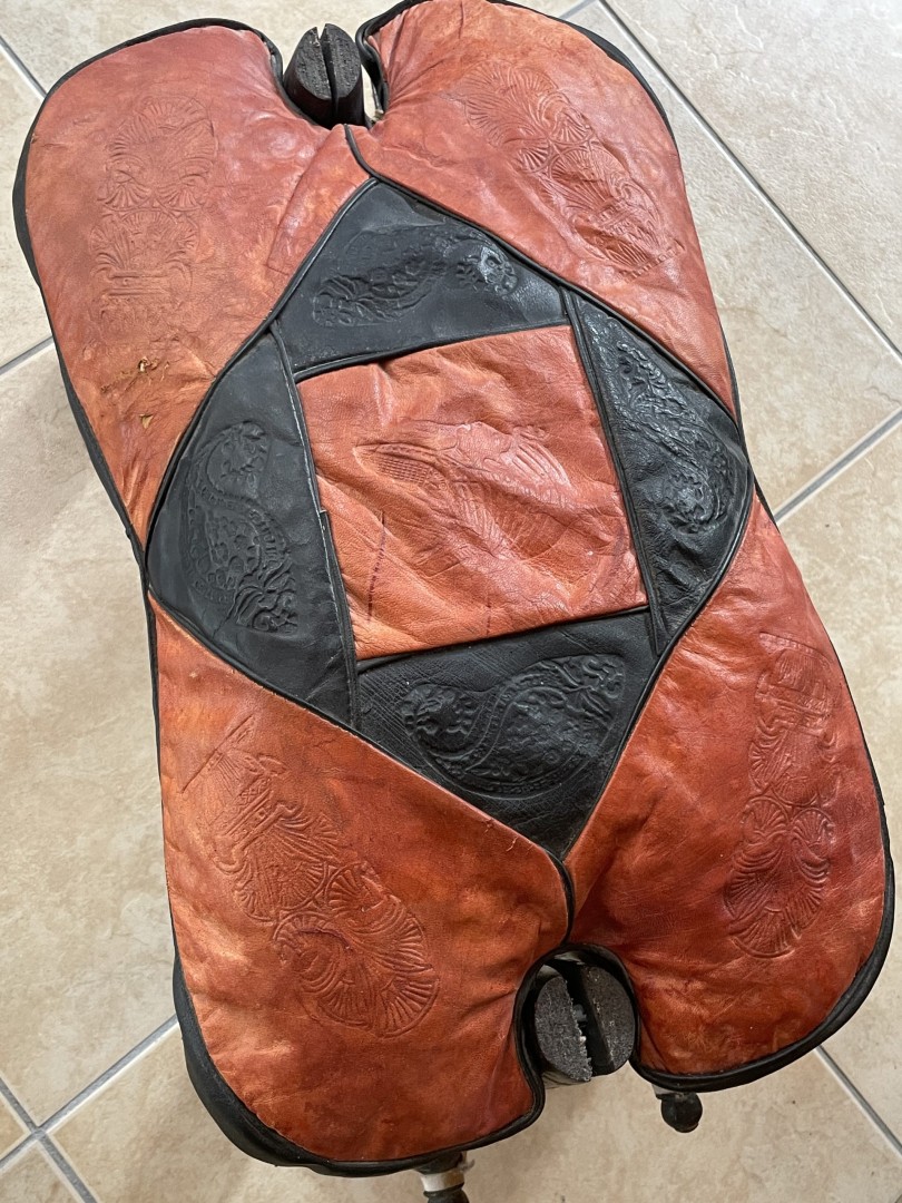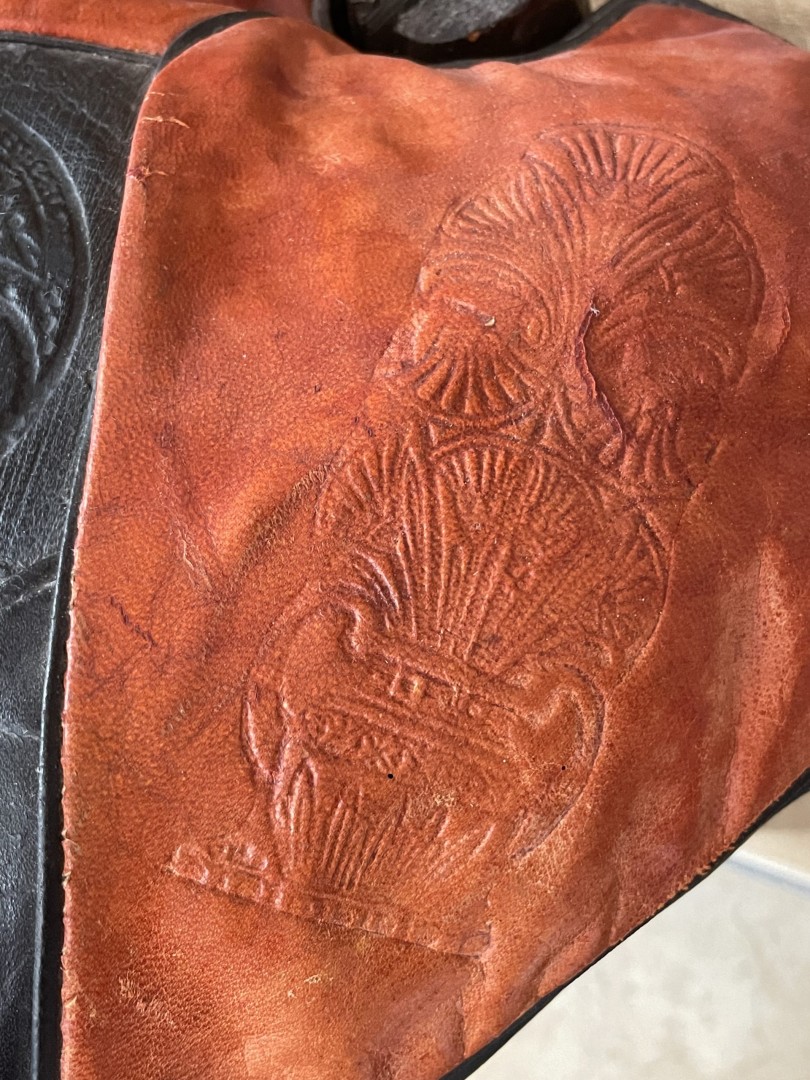 A vintage Egyptian leather footstool with a wooden base and a leather top can be a charming and unique piece of furniture. A vintage Egyptian leather footstool with a wooden base and a leather top can be a charming and unique piece of furniture.