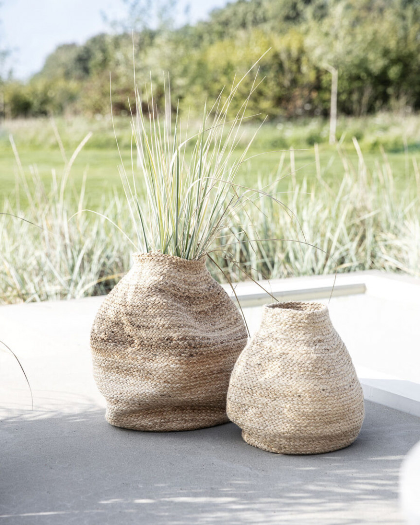 BASKET / ZIMBA / NATURE / S h: 40 cm, dia: 35 cm Make the storage solutions a part of your personal decor. Zimba is a beautiful basket made of jute. Due to the natural material of the basket, it will provide the decor with a warm, cosy atmosphere. The basket is a perfect storage solution for the children’s toys or for blankets and pillows in the living room. Zimba measures 60 cm in height and 45 cm in diameter.