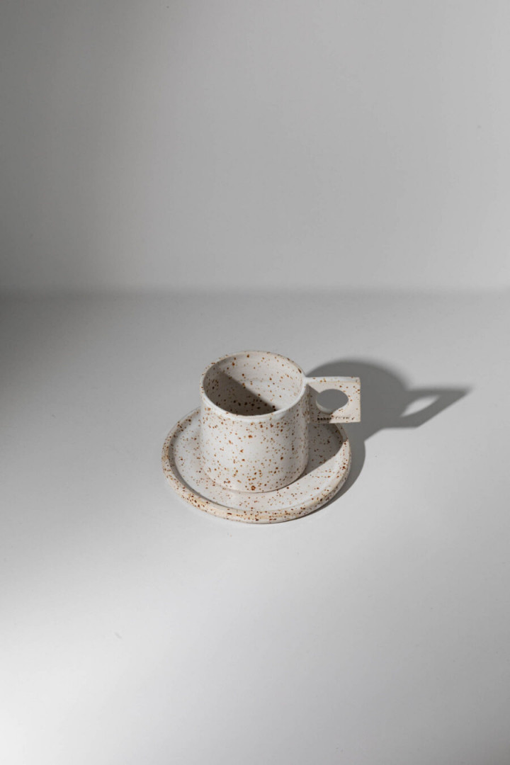 MUG WITH SQUARE HOLDER / COW / CERAMIC H 9 cm X D 8,5 cm Enjoy your hot chocolate or coffee in our handmade ceramic mug with square holder. The cow print adds a fun and stylish touch to your mug collection. Pair it with the small ceramic cow print plate for cookies and enjoy. These mugs are hand-thrown on a pottery wheel and they are made out of white clay. They are dishwasher and microwave friendly. All of our ceramic products are handmade and unique, therefore there might be a slight difference from the product of the image.