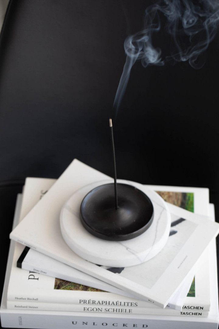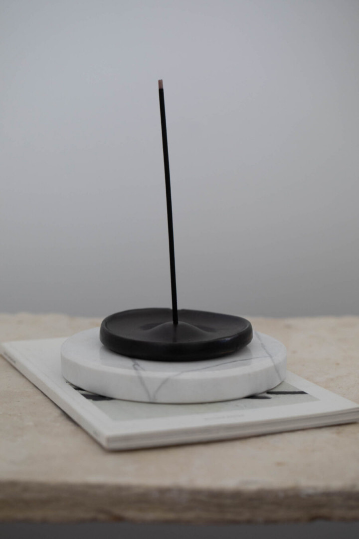 MARBLE TRAY / WHITE / ROUND / S H 2 cm X D 15 cm The perfect way to decorate your candle, incense holder or palo santo holder with style. Place it on a black coffee-table to create contrast. Our selection of handmade marble boards & trays, can be used both as a decorative object and as a serving board. Pair it with our ceramic candles, female figure candles and ceramic diffusers to create a wonderful atmosphere. They are practical, elegant and available in different shades of neutral colours. Please note that colour and pattern may vary.