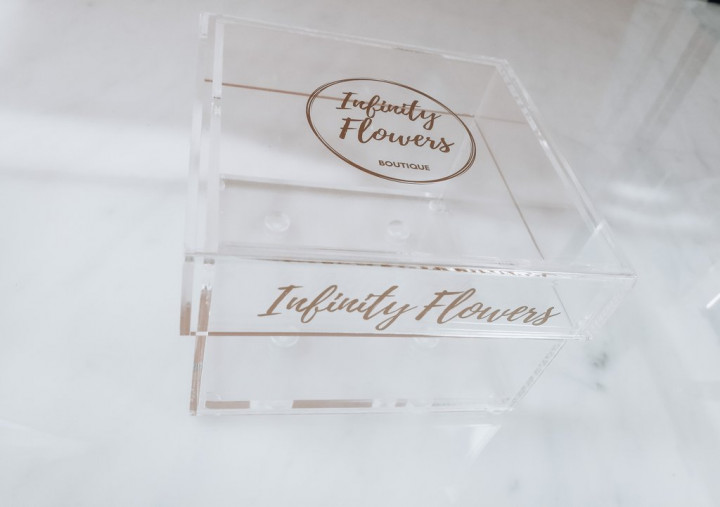 Los cuatro features four stunning infinity rose in a transparent plexi glass box that protects the roses while enhancing its beauty.