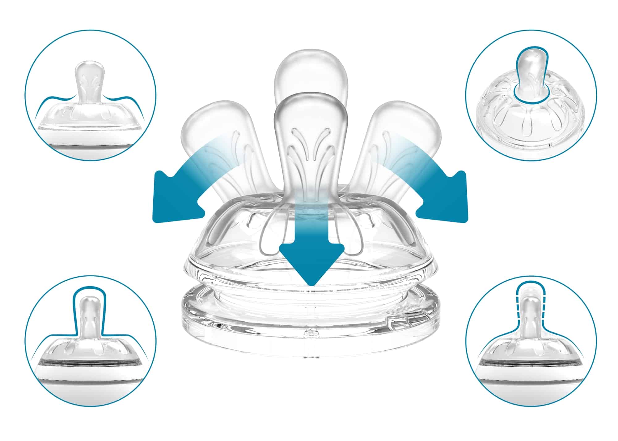 The innovative teat is designed to not only look like but more importantly behave like your breast during feeding.