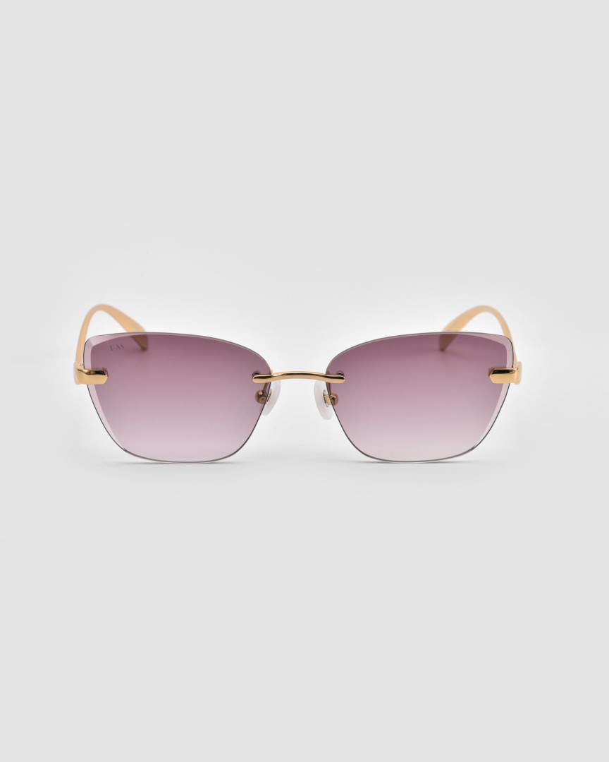 The Spark sunglasses bring a daring lightness to the collection with their rimless cat-eye silhouette, a design that feels both refined and boldly futuristic. From the front, the frame is minimal and sleek, while the temples reveal a sculptural 3D curve, catching the eye with a graceful play of form and movement.