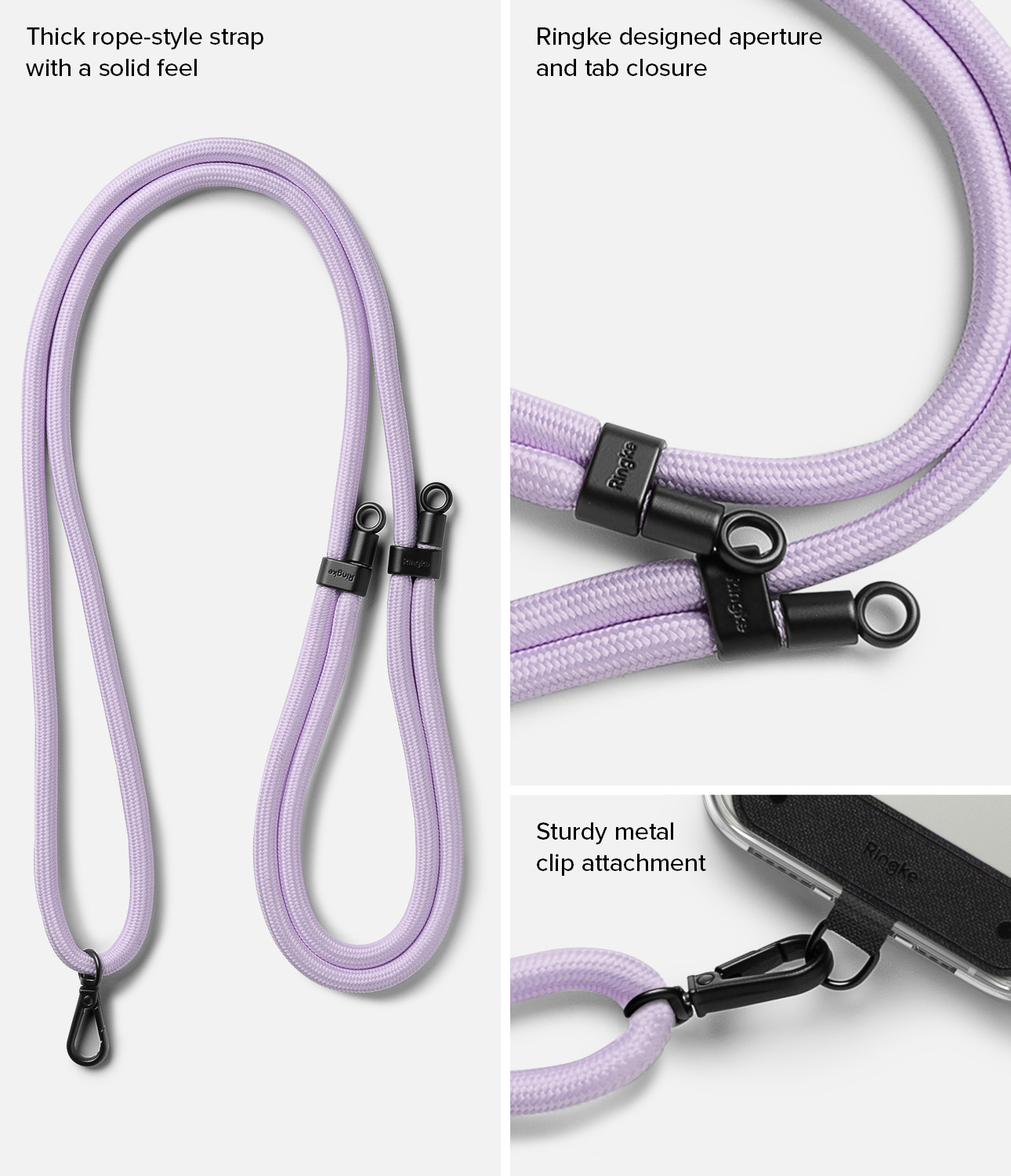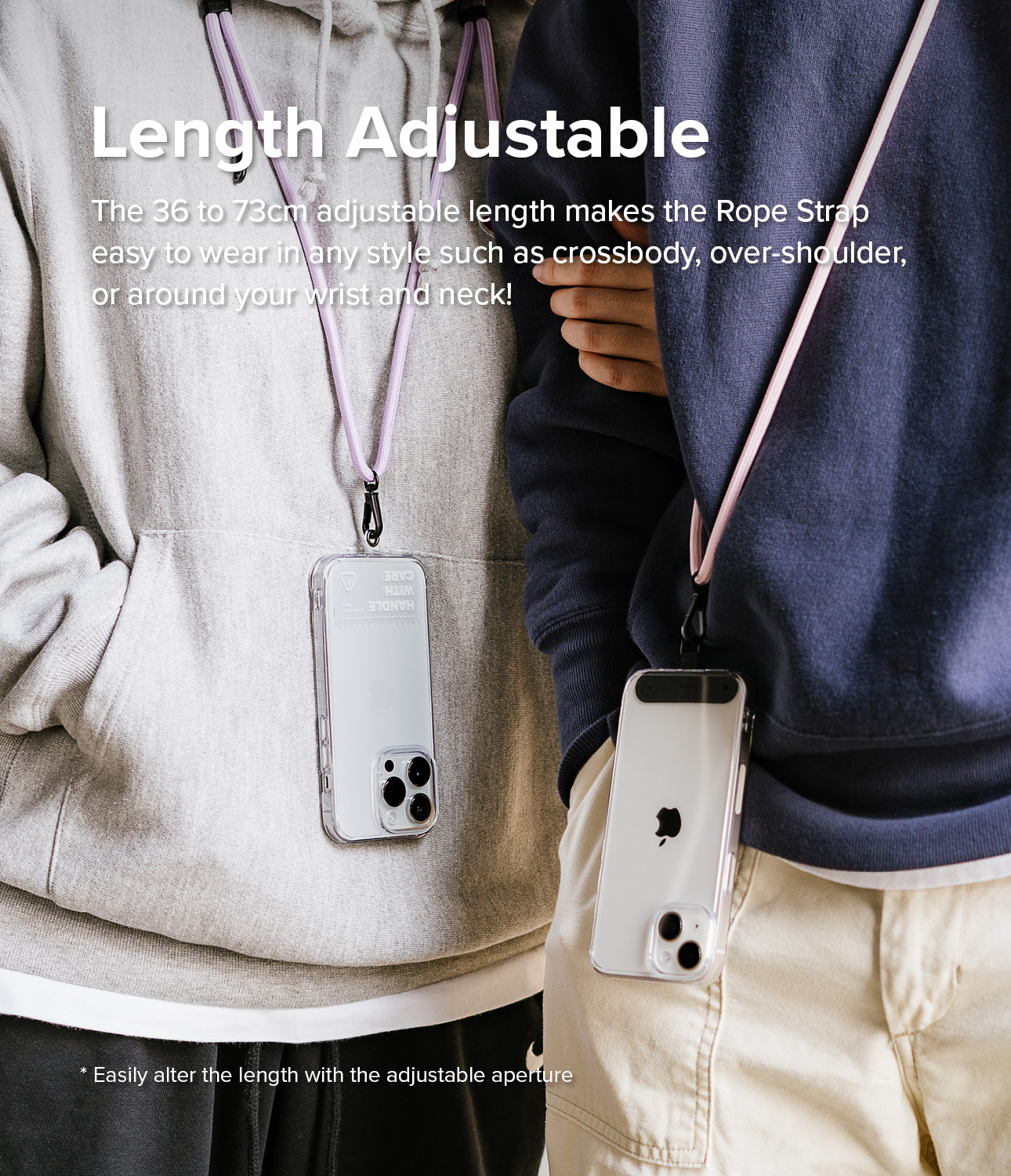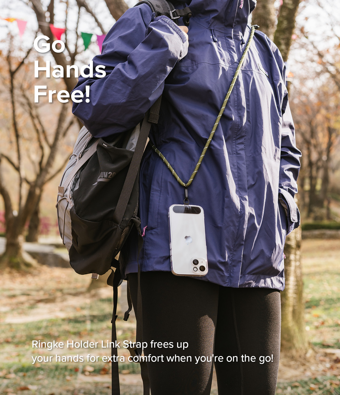Ringke-exclusive design universal smartphone tether for lanyard straps. Made of durable, anti-tearing transparent TPU with a unique text design. Strong metal ring connector lets you reliably attach neck and wrist straps and supports the weight of your device. Bulk-free and thin for easy portability and does not block the charging port. No tools required! Fits with most smartphone cases without the need for tools or adhesives.