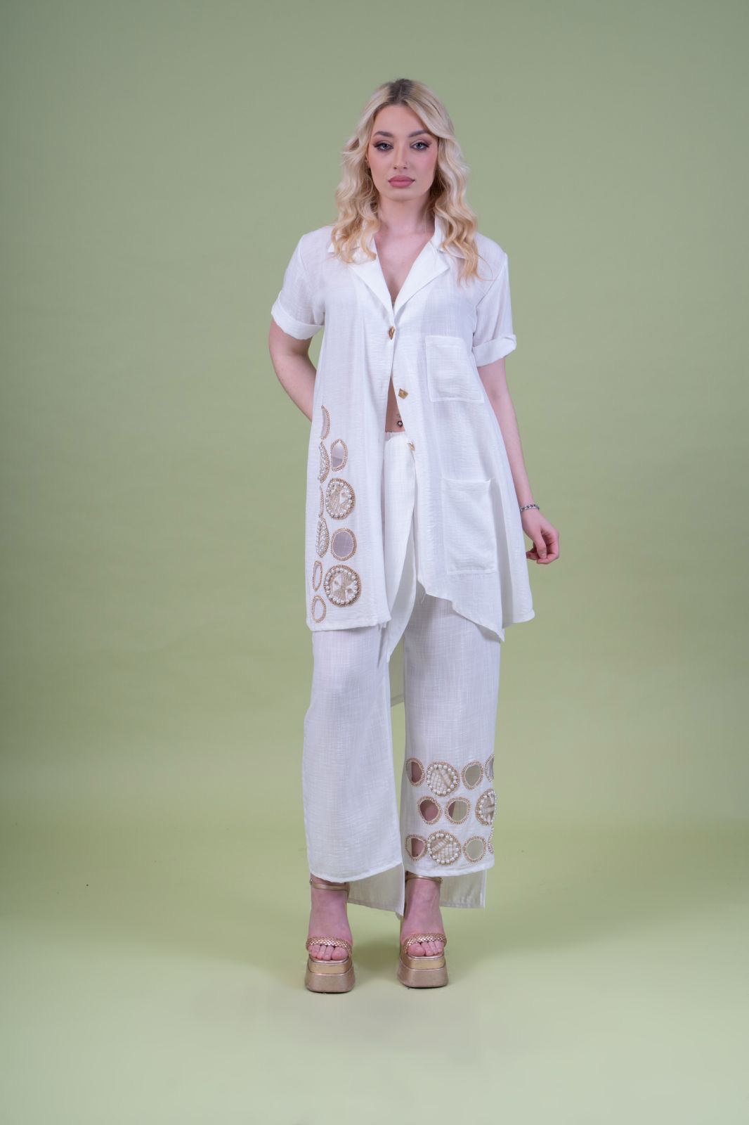you much with a trouser as you see on picture or you wear it as it is - unless you are tall and you need to wear something with it. Assymetric and longer at back side.