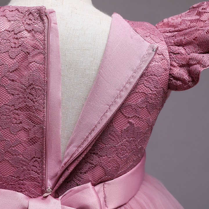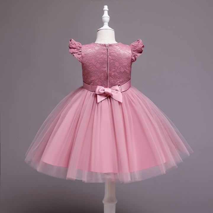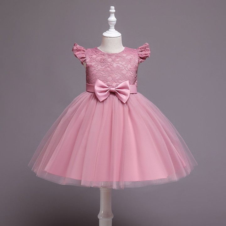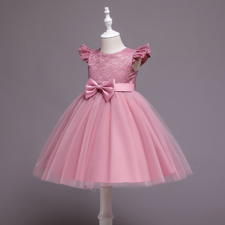 Flutter-Sleeve Bowknot Decor Mesh Party Dress, The Dress Is In A Very Comfortable Line, So It Can Be Worn Easily And Is Particularly Comfortable In Movement. * Sleeveless Dressâ * Soft And Comfy * Material: 65% Polyester, 35% Cotton * Machine Wash, Tumble